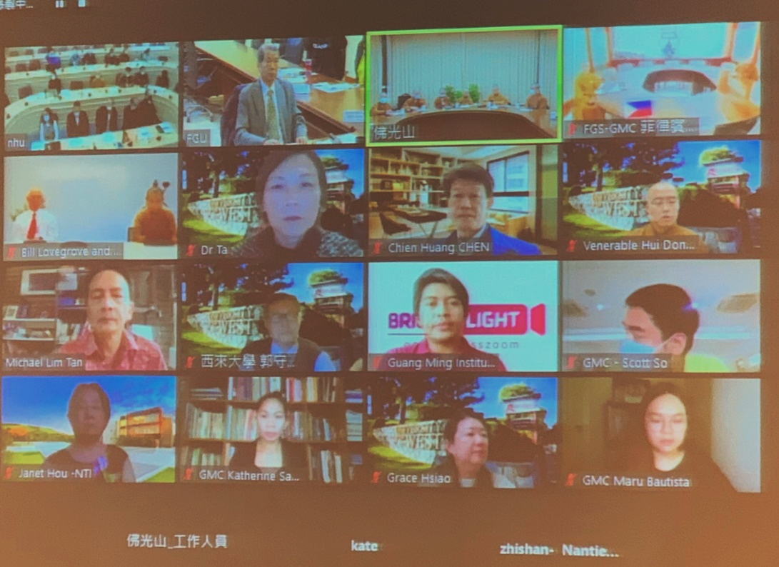 2021 FGS International University Consortium Meeting Since 2017, FGS International University Consortium office has organized the annual meetings from 2016 to 2019, and the priorities of this meeting is to forwarding the ideas of education and higher education of Venerable Master Hsing Yun. Due to the Covid-19 affection the whole world in 2020, thus various industries have faced the urgency to transfer in another shape, so does to the education industry. In respond to the Covid-19, FGS International University Consortium meeting began on January 14th, 2021 and focused on getting over this serious problem following integrating the resources of FGS International University Consortium by communication through this video conference. ![]() The chairman of this meeting is Dr. Chaur Shin Yung who represents the president of FGS International University Consortium, and we also invited Venerable Tzu Hui, Special Assistant to Founder’s Hall, Fo Guang Shan, who is also the Chairperson of FGU and Vice Chairperson of NHU, Board of Directors to attend this meeting. The attendees were Dr. Minh-Hoa Ta, president of University of the West, Dr. Tsong-Ming Lin, president of Nanhua University, Dr. Bill Lovegrove, president of Nan Tian Institute, Dr. Michael Lim Tan, DVM- Provost of Guang Ming College and especially Dr. Chien-Huang Chen, Director of Centre for the Study of Humanistic Buddhism and Ven. Miao Nan, Chancellor of FGS Tsunglin University to join in this meeting, therefore the deeper significance of this meeting were to expand the power of FGS International University Consortium. The main purpose of this meeting were focusing two directions, one was to understand the safe processes and handling to Covid-19 in respective university, and the other is to review the current status of latest development in brief introduction of respectively universities. During the section one of this meeting, respective universities provided many different practices in safe processes and handling to Covid-19, so the attendees were aware of the realities of the special circumstances of education under the epidemic. It continued the agendas and progress from previous meeting and it revealed the facts that respective universities all pursued the feasible practices and plans. The fresh agendas of this meeting were focusing on three directions. 1. In respond to the influences of Covid-19, the discussion of how FGS International University Consortium to enforce the intercollegiate cooperation. 2. How FGS International University Consortium connect with sister schools in terms of intercollegiate cooperation (communicating, teaching and connection) 3. The suggestions of how FGS International University Consortium to promote the ideas of Buddhism into respectively academic fields. It spent three hours more on video conference, the presidents of respective universities and attendees were highly interactive, especially they proposed so many multiple directions and strategies in responding to the agendas. In the end of this meeting concluded the decision in terms of the following FGS International University Consortium meeting will be held at least twice a year, one is in person, and one is through video conference. Due to the epidemic situation, we expected the next meeting will be arranged through video conference, and it will be expected to hold at the end of the semester around late June or early July 2021.